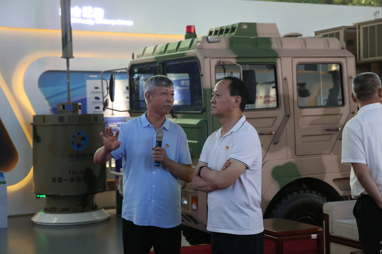 在公司文化展廳和產品展廳,王栓柱書記介紹了天和防務的發(fā)展歷程、業(yè)務領域以及在軍民兩用科技領域所取得的成就,近距離觀看了便導指揮系統(tǒng)、邊海防雷達、水下無人自主航行器、云脈智能穿戴設備等科技創(chuàng)新產品,了解天和防務在科技研發(fā)和成果轉化上取得的成績。